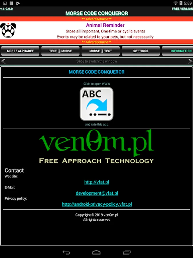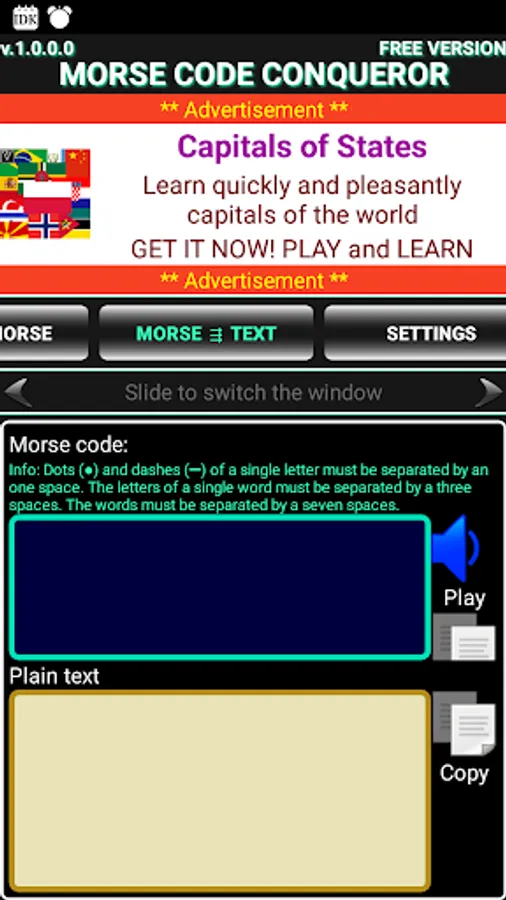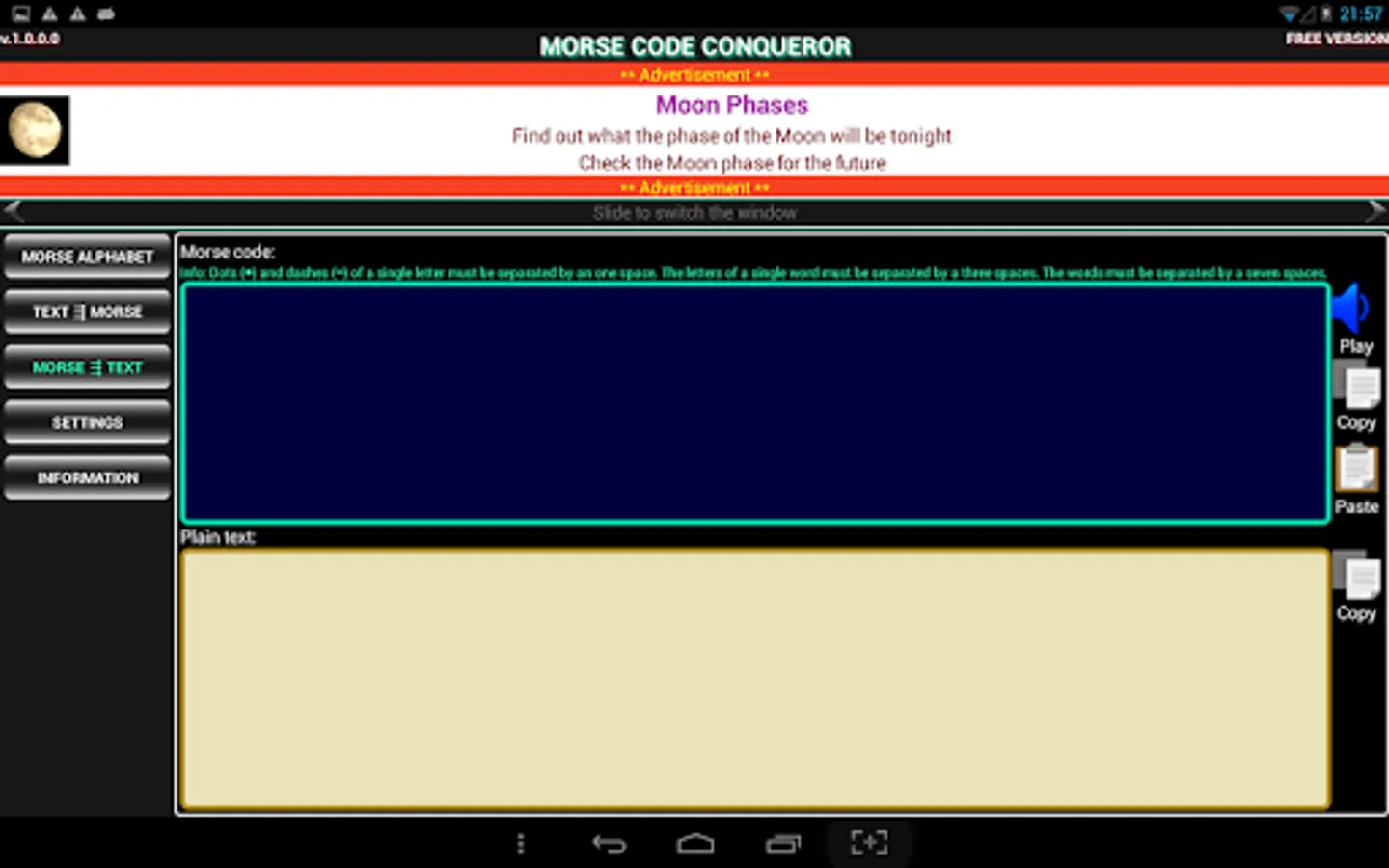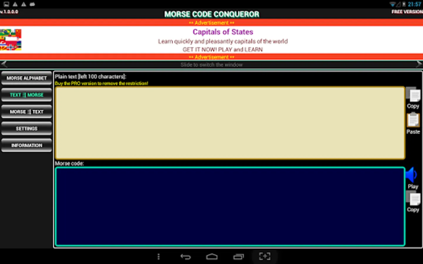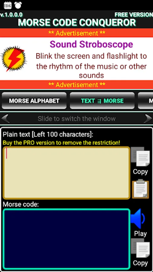 Warning! Free version of the application has a one restriction. You can code only 100 chars of a plain text. The application contains advertising.