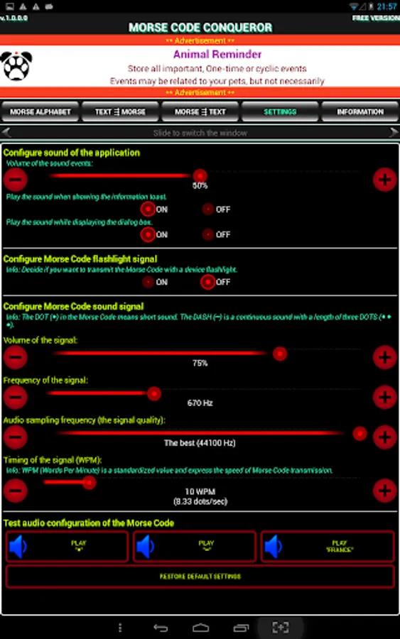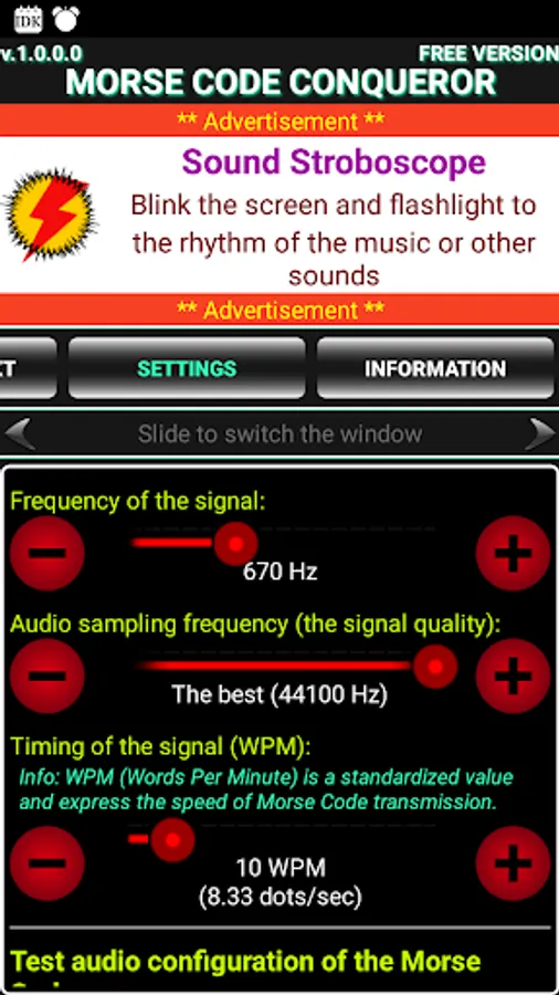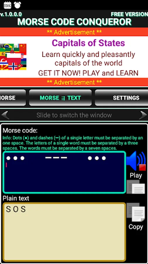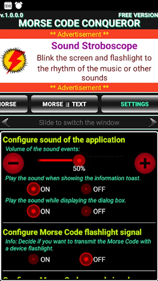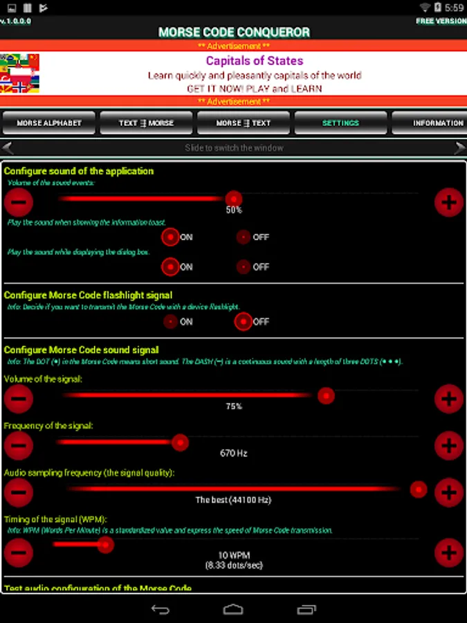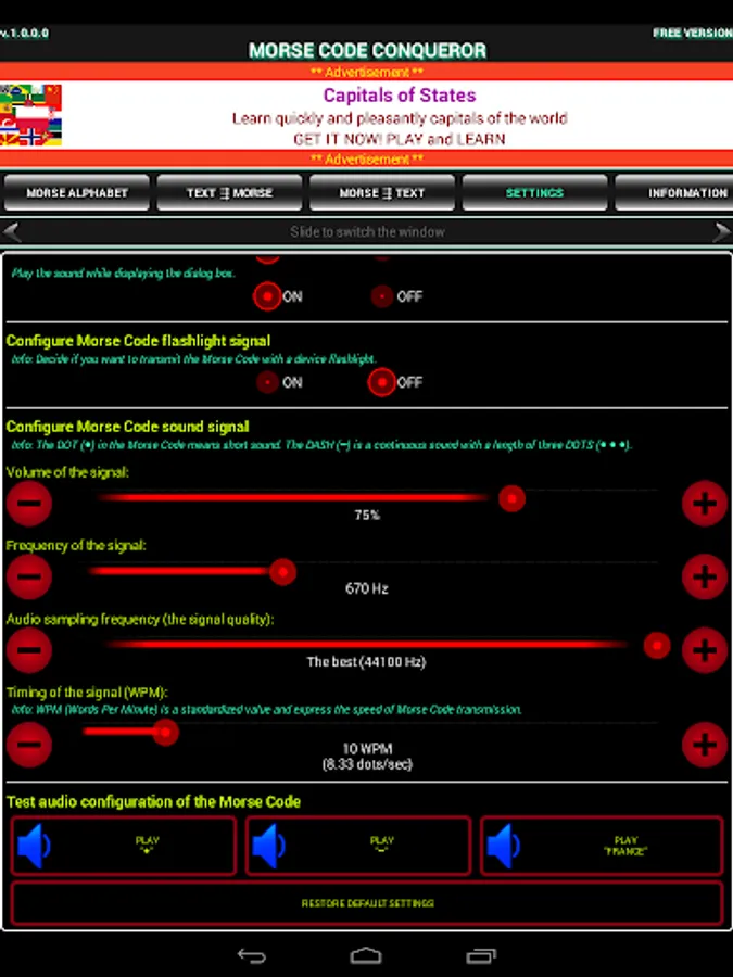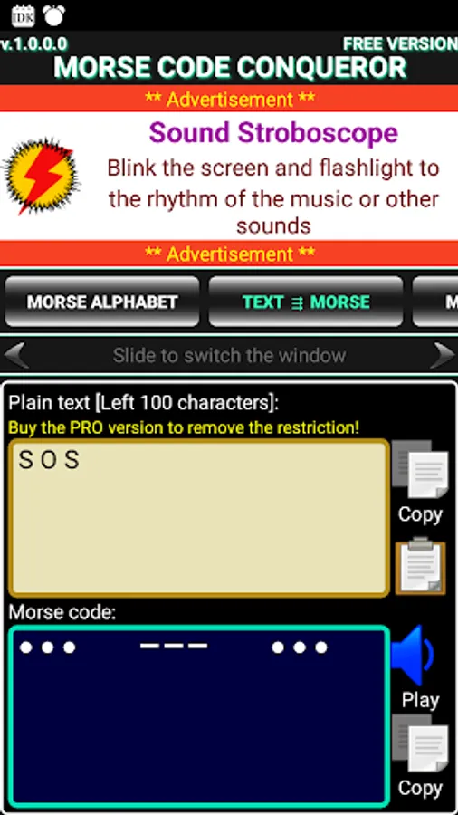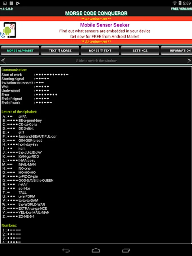 4. Transmit Morse Code with sound and flashlight (if your device has it).