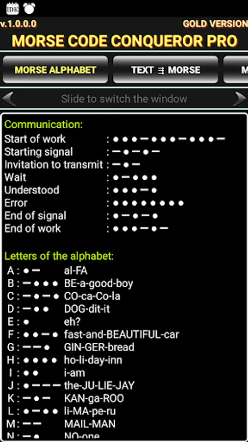 1. Learn a letters of the alphabet (with mnemonics), numbers and symbols of the Morse Code.