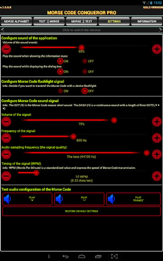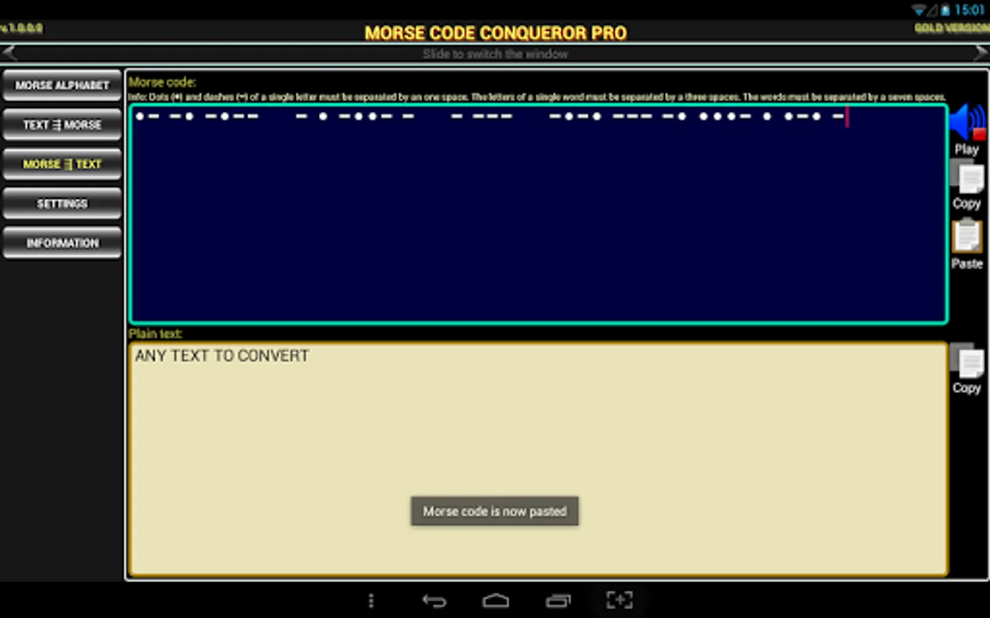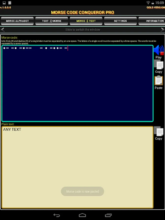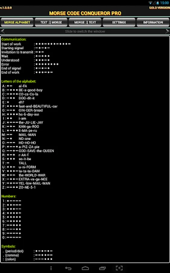 4. Transmit Morse Code with sound and flashlight (if your device has it).