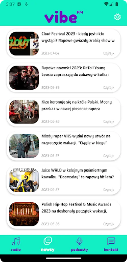 The vibe fm application also offers live broadcasts by radio presenters who connect with you - listeners, live. Stay up to date with the latest music events, discover new trends and let yourself be carried away by exciting conversations and interviews with artists. In addition, every day we have for you RapRaport, a music magazine, thanks to which you will be up to date with the latest news from the life of your favorite performers.