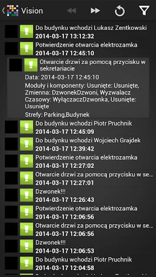 The application allows remote control of a building equipped with a building automation system Vision BMS.