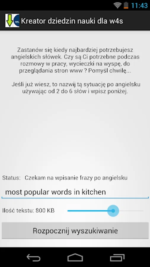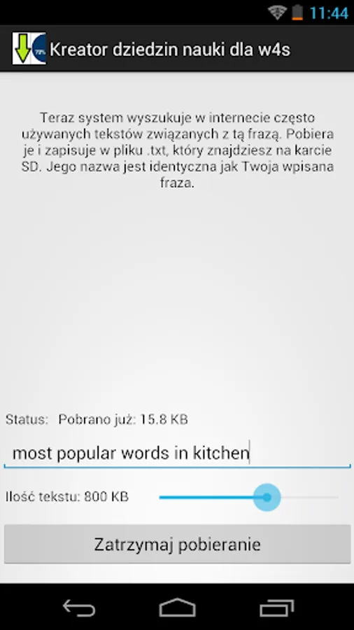 4. You specify how many KB of text associated with that phrase you want to download, by moving the slider.