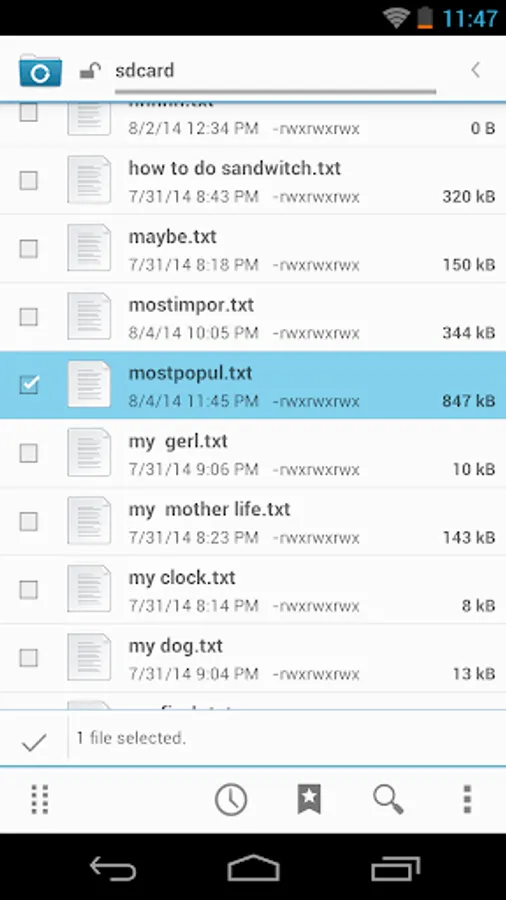 5. you search previously created a .txt file on the SD card and select by clicking on it