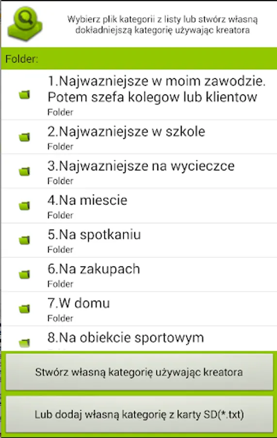 ★ Możesz samem poszukać w internecie lub książkach angielskiego tekstu dotyczącego swojego zawodu, rozmówek rekrutacyjnych, informacji hotelowych, artykułów o wakacjach, a następnie skopiować ten tekst do pliku .txt na telefon