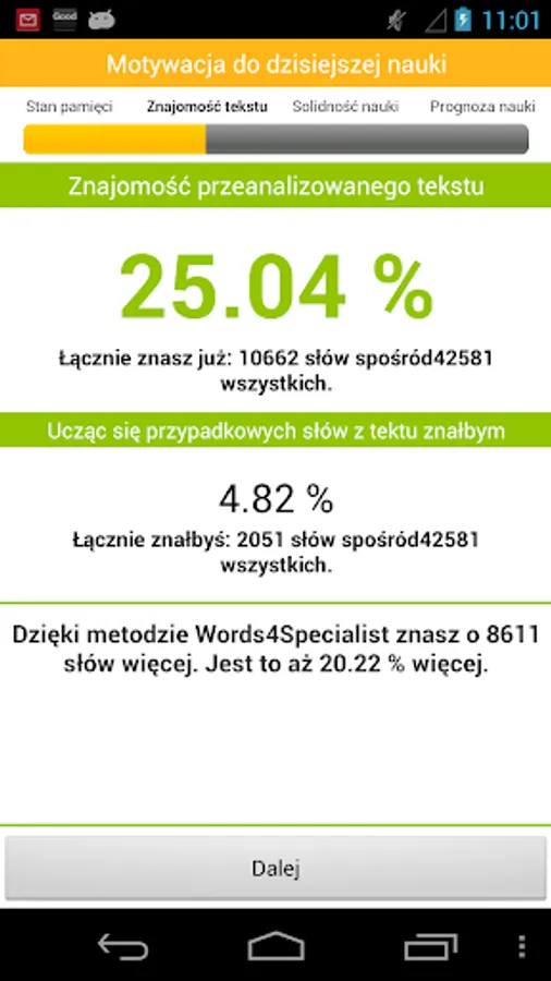 2. Tak zgromadzony tekst poddawany jest analizie i wybrane są z niego najczęściej używane słówka do nauki po 30 dziennie na kolejne 10 dni