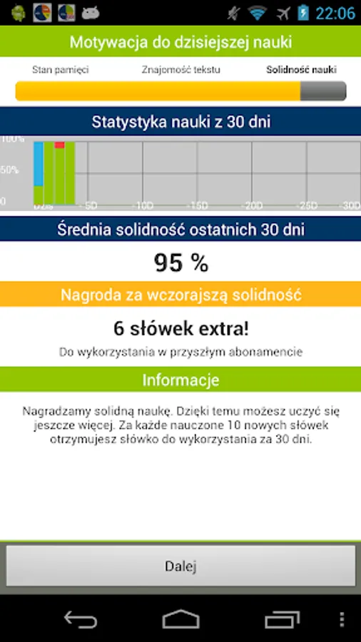 A, żeby Twoja motywacja nie spadła, po każdym dniu nauki zobaczyć możesz prawdziwe rezultaty