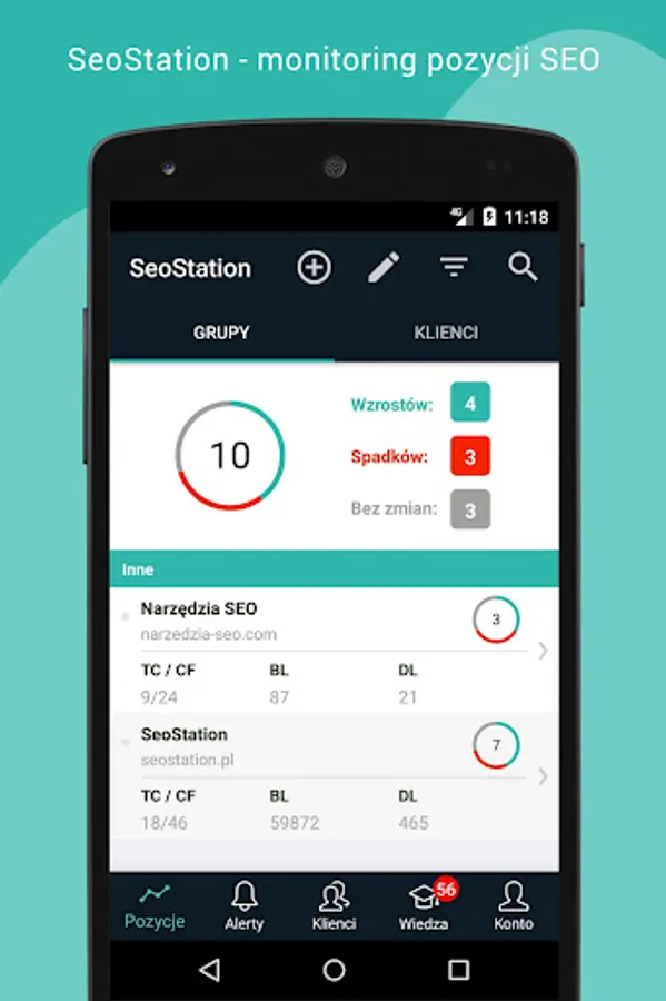 SeoStation monitor is a leading position in Poland was established in 2011. The mobile application is a standalone tool, but the account that you wear allows you to use a Web application seostation.pl