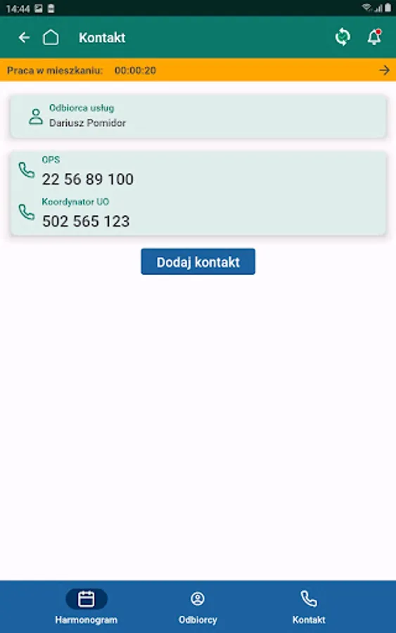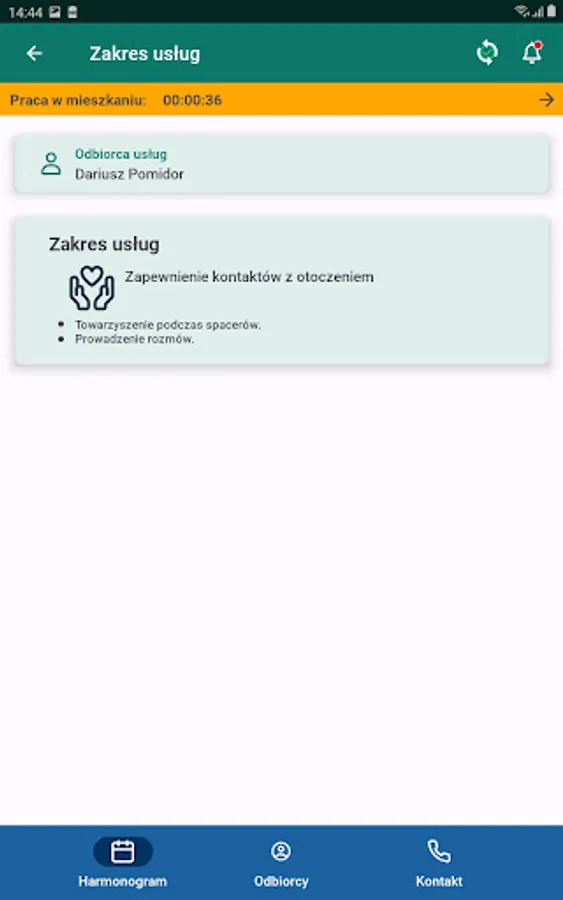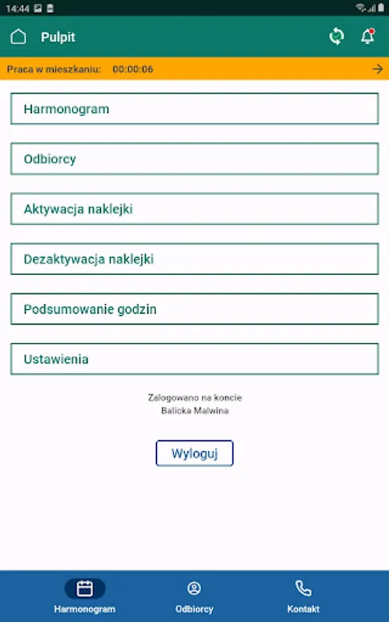 A mobile application running on smartphones with Android systems, intended for babysitters providing care services, used to report work in the environment.