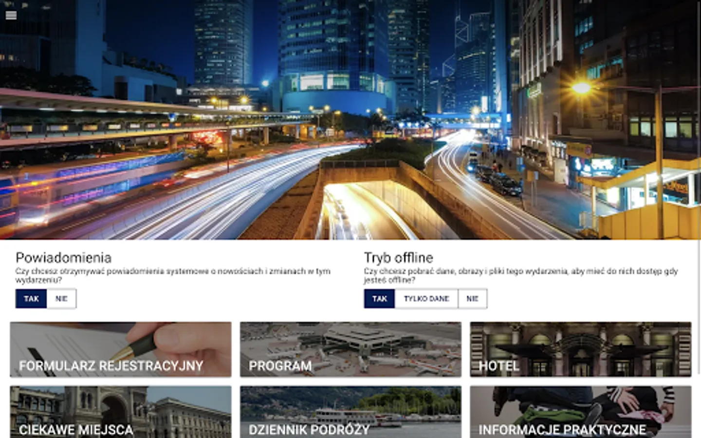 App for participants of the events organized by Weco-Travel. With the app you can learn more about the event - read about the hotels you will stay or places you will visit, browse detailed agenda or flight schedule, send registration form and find other helpful information. Be informed about the event thanks to PUSH messages. You can use the app when being offline.