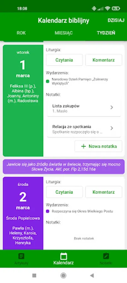 a fragment of the Gospel in the "Week" tab