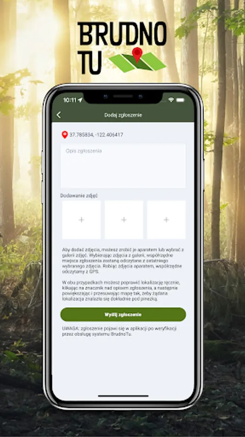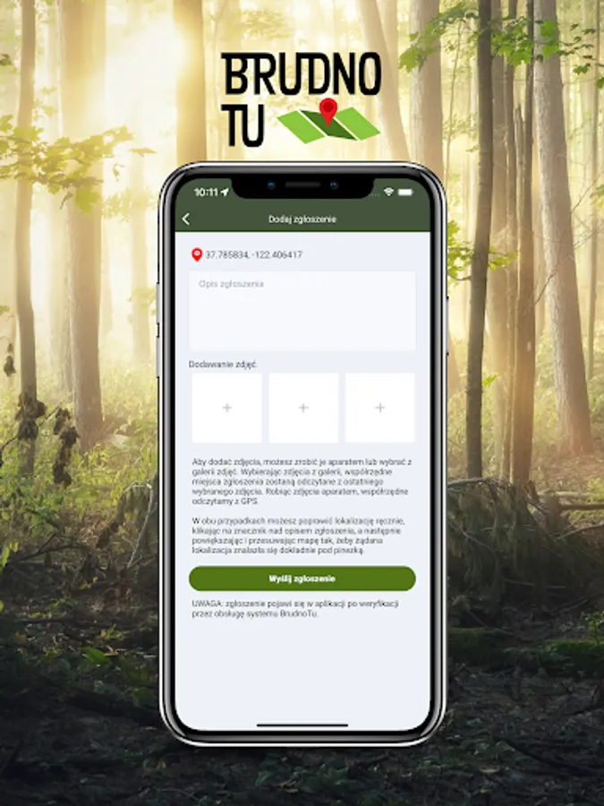 See a garbage dump in the nearby forest? Or maybe the beach where you spend your vacation needs cleaning? Take a photo, describe the location and send an application via the "Brudno Tu" application of the Bank Ochrony Środowiska Foundation.