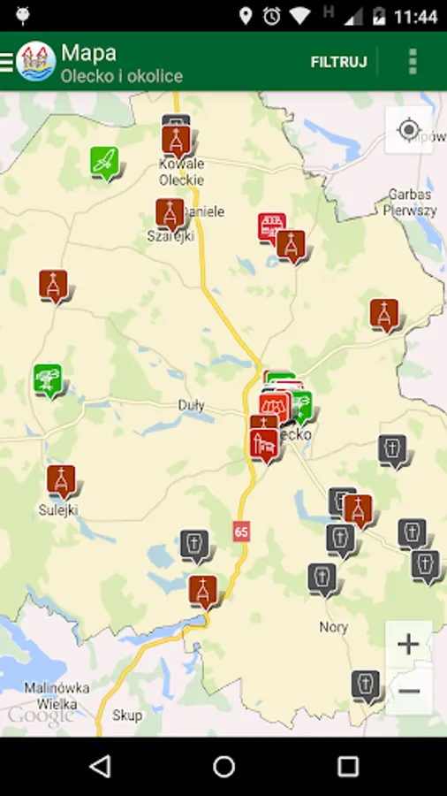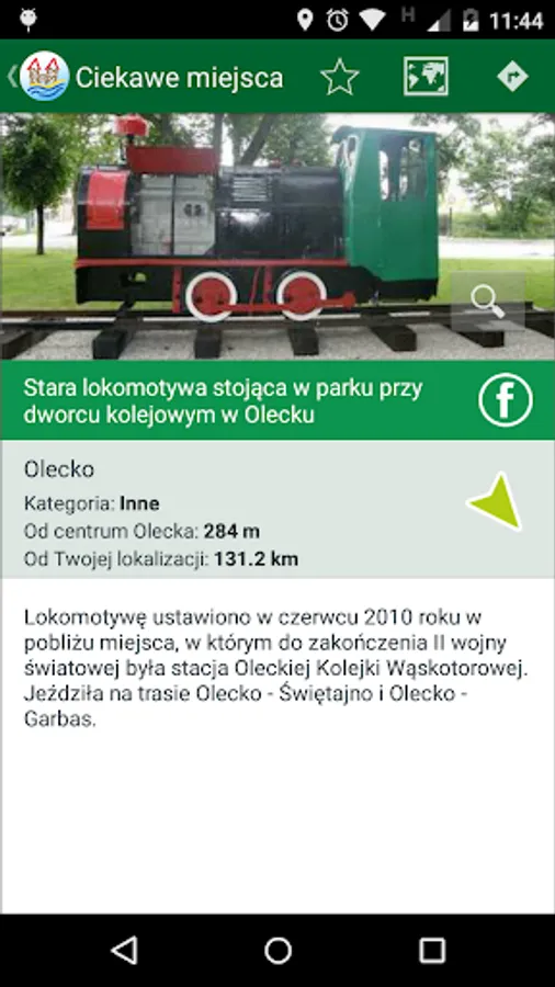 The application has a built-in database of tourist and commercial and service facilities, so it is possible to use it without having to connect to the Internet. A tourist guide for Olecko and the Olecki poviat will allow every tourist to discover the nearest tourist attractions, learn about organized events, get to know the surrounding lakes, picturesque tourist routes, monuments and interesting places.