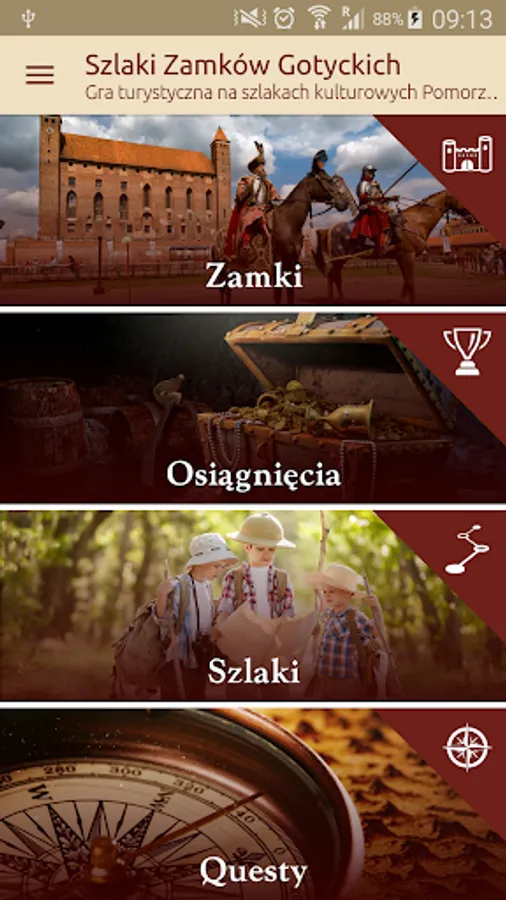 Start by running quest adventure - the game terrain on the selected route, tell your questions, earn points and badges, or the first in the ranking. Quest will guide you through the most interesting places and objects in the north of Poland, will tell you about them and test your knowledge.