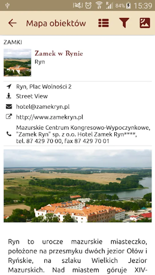 The application is a real compendium of knowledge for active travelers who want to have in your smartphone both access to rich descriptions of historical curiosities and gallery visited sites, as well as full tourist information at your fingertips with a set of useful information on. Accommodation, restaurants, events, and a list of other attractions tourist to visit in the area.
