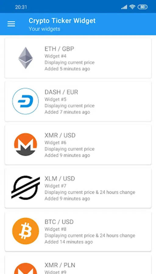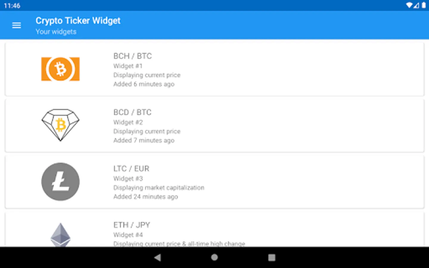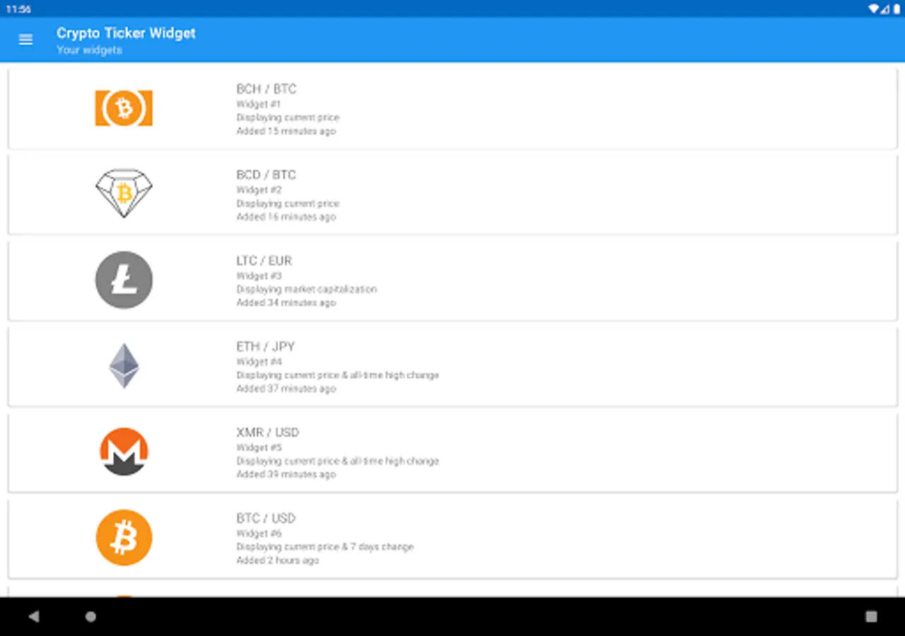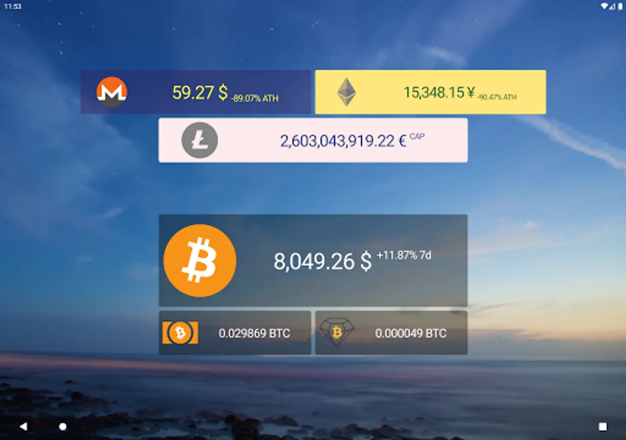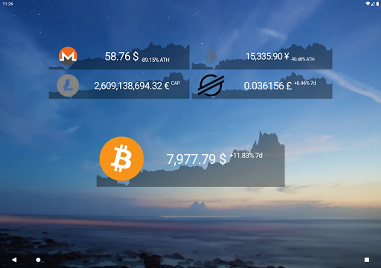 Meet Crypto Ticker Widget, totally free homescreen widget which allows you to monitor exchange rates for over 5000 cryptocurrencies and tokens based on CoinGecko.com live data, including Bitcoin, Ethereum, XRP, Litecoin, Monero, Dash, Dogecoin and many others.