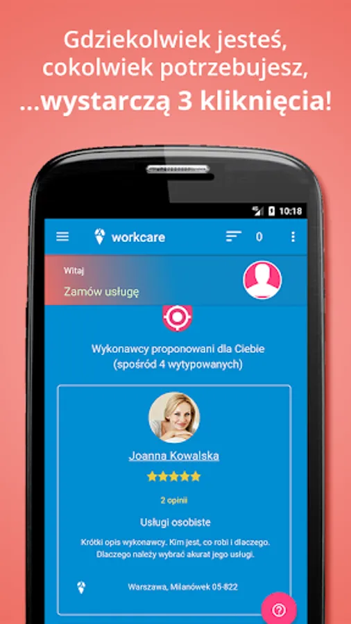 Application WORKCARE revolutionizing services market! It's a real alternative, which sets standards for solutions of the XXI century. We are changing the way you use the services in the era of smartphones. Truly on-demand and real fast. You click 3 times ... and the problem!