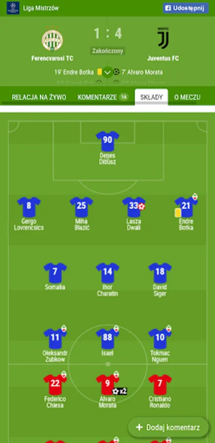 - football (Ekstraklasa, 1 Liga, Premier League, Bundesliga, Primera Division, Serie A, Ligue 1, Champions League, Europa League)