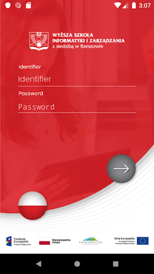The application uses the same login details as the Virtual University, to facilitate logging in, the user can shorten the login process using biometric data or through a user-defined pin code.