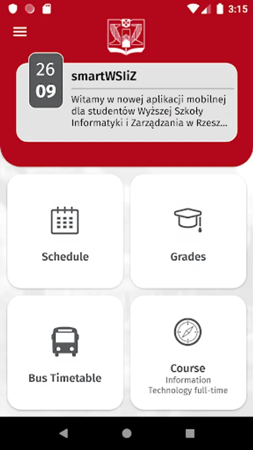 smartWSIiZ is an application dedicated to the academic community of the University of Information Technology and Management in Rzeszów.