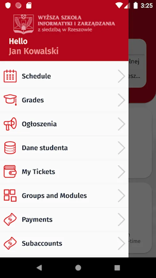 You can easily access basic information about the university. After logging in, the user gains access to the class schedule, grades, university announcements and much more.