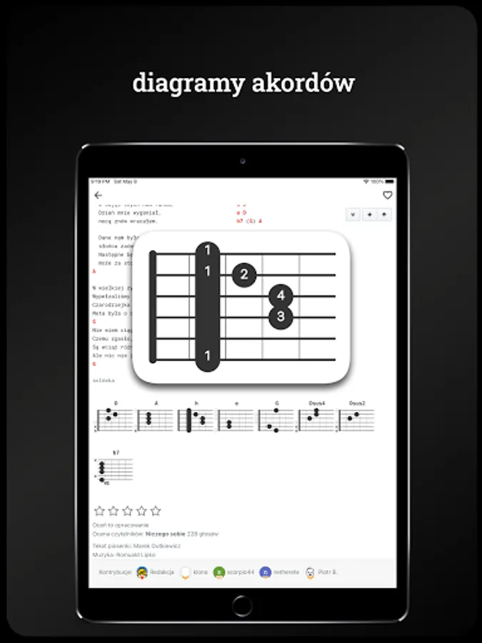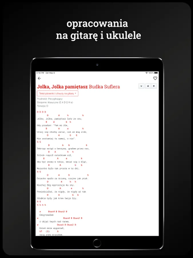 The Wywroty Songbook is the largest database of Polish and foreign songs created by guitarists for guitarists. Updated on an ongoing basis for over 20 years, it currently contains nearly 25,000 songs with professional guitar or ukulele arrangements! Now you can easily find each of them thanks to the app.