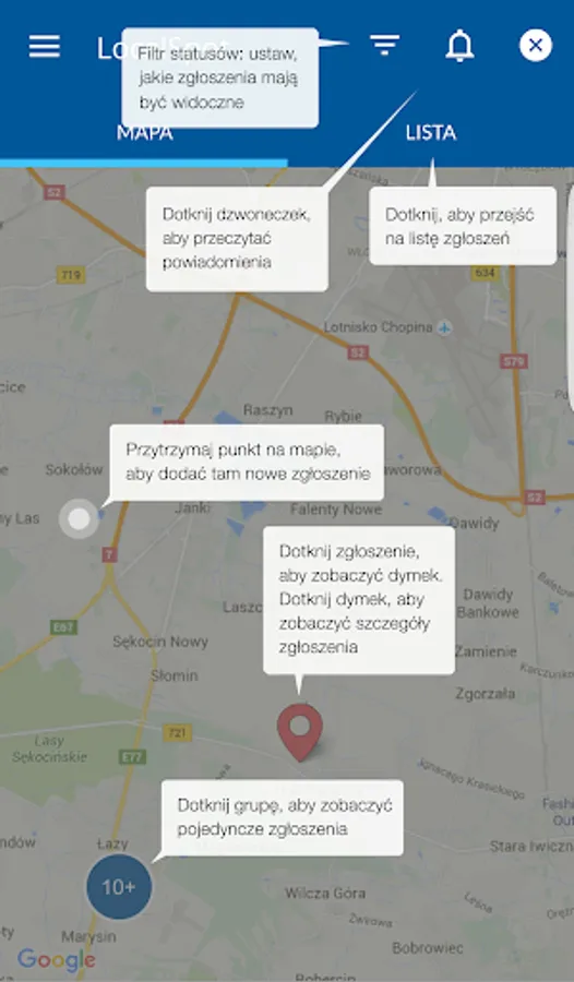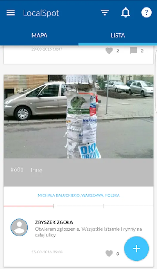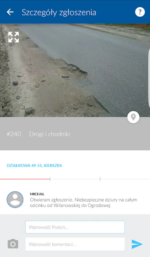 You see a hole in the road or garbage in the woods and did not know where to report it? Use the trap LocalSpot, and your application in a few seconds will go to the office.