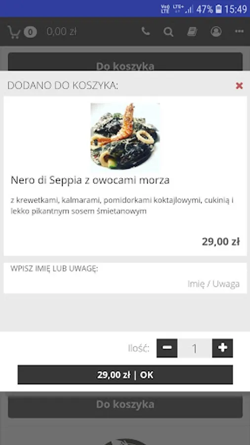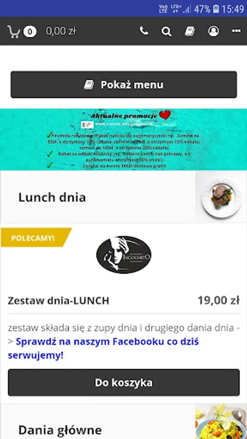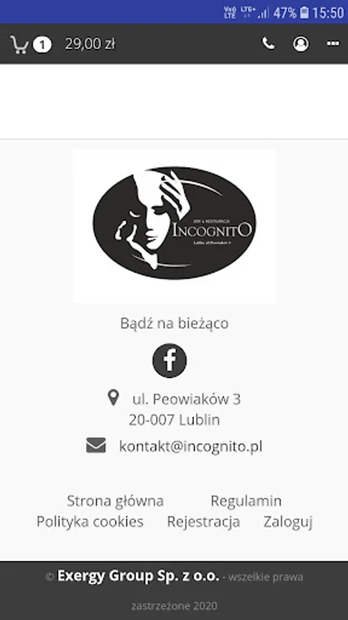 Application for ordering food at the Incognito restaurant in Lublin.