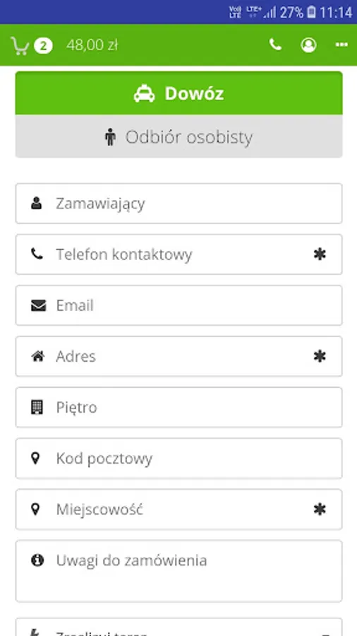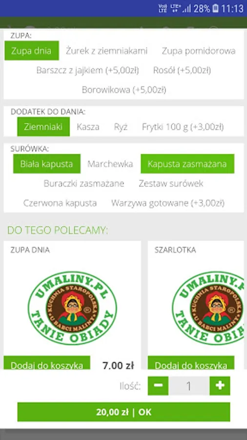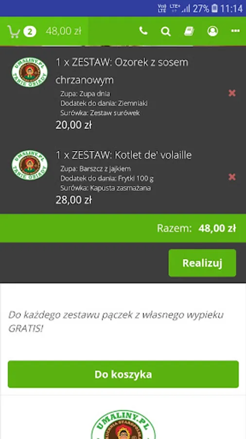 The application is designed for fast ordering in a restaurant kitchen with Grandma Raspberries in Krakow.