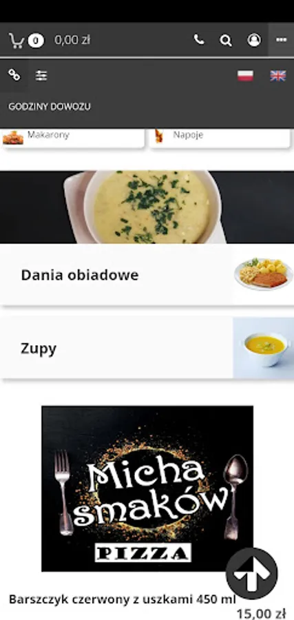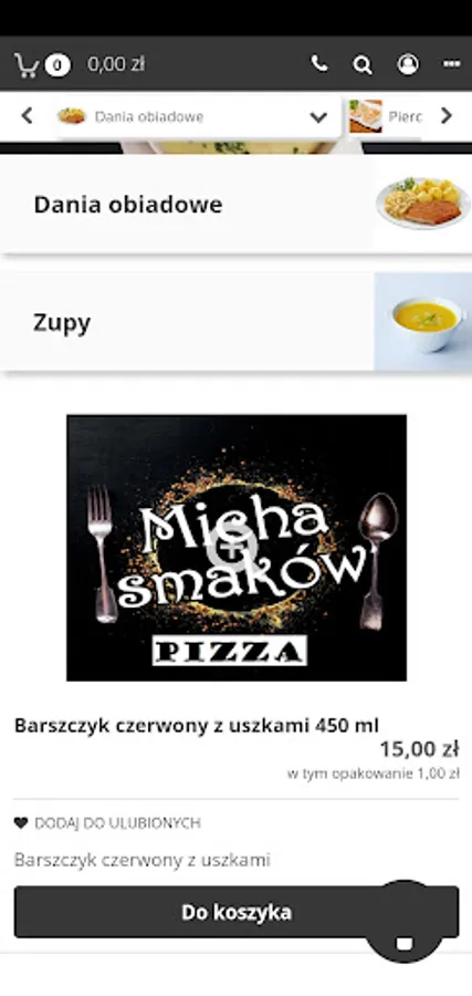 Application for ordering food at the Micha Smaków restaurant in Kielce.