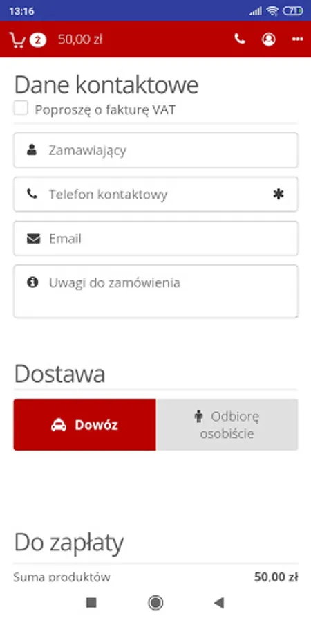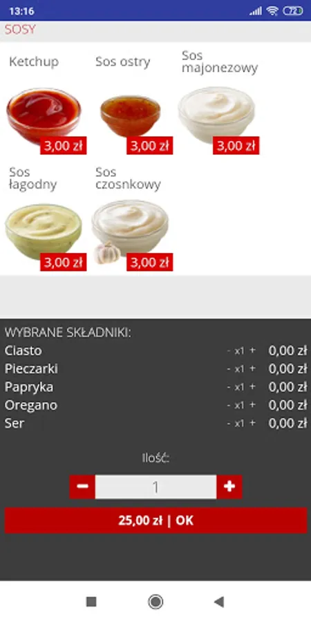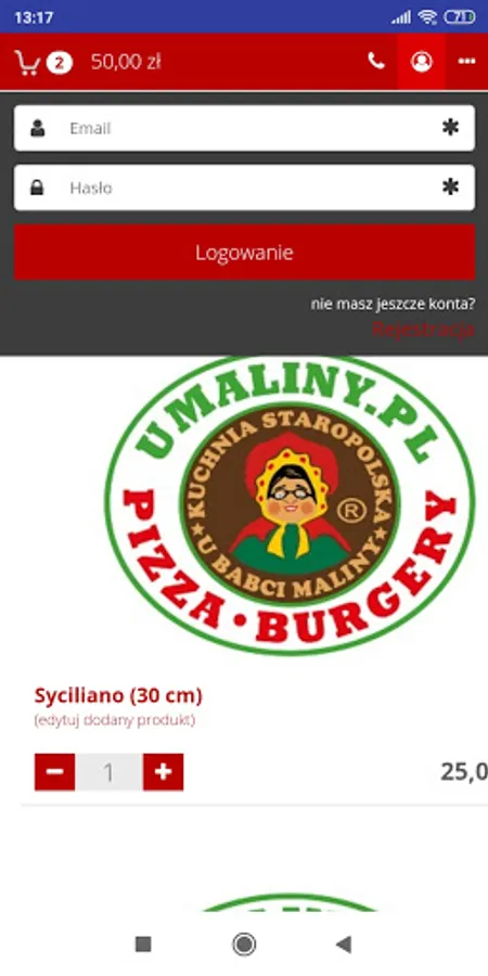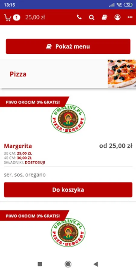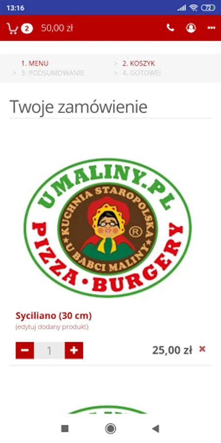 Application for ordering food at Babcia Malina's pizzeria in Krakow.