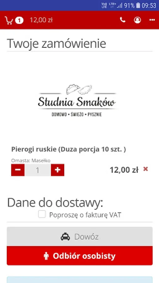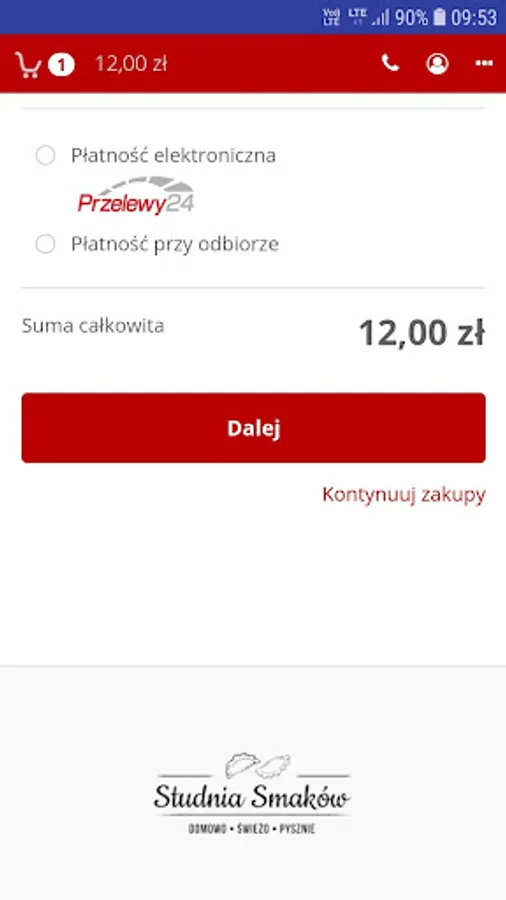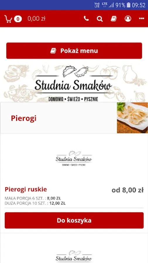 An application for placing orders at the Studnia Smaków restaurant in Krakow.