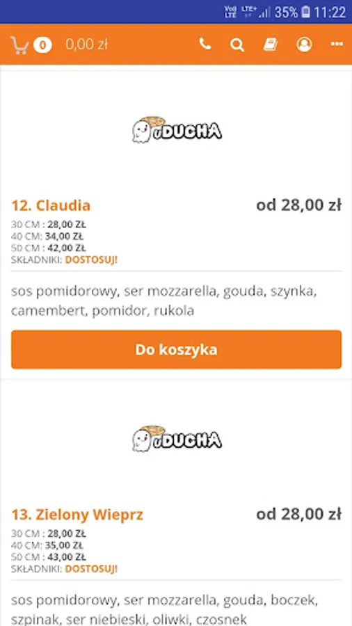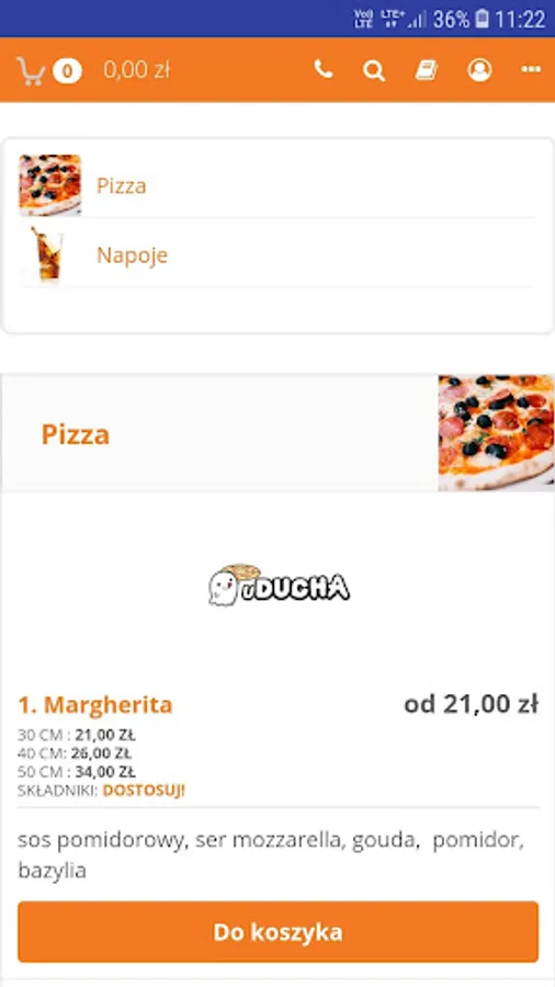 Application for ordering food at the Pizzeria at the Spirit in Rzeszów.