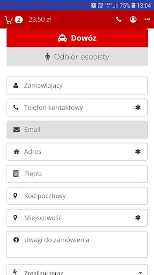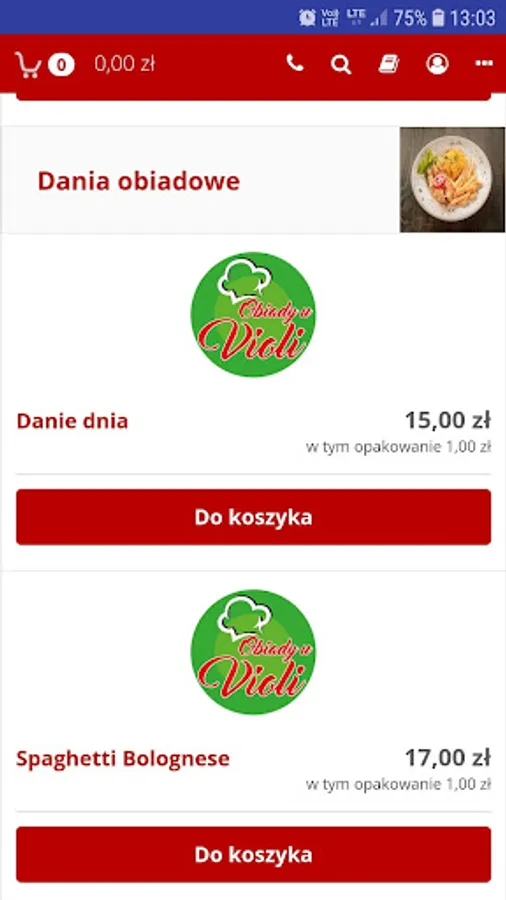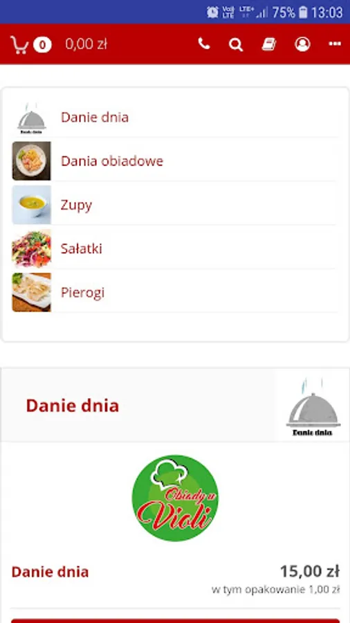 Application for ordering food at a restaurant at Viola in Ostrów Wielkopolski.