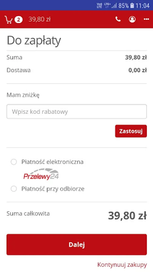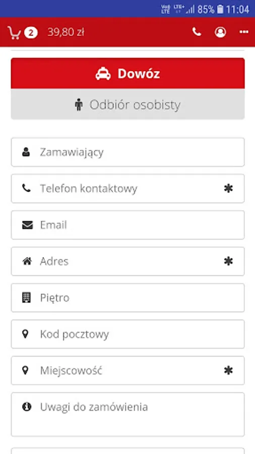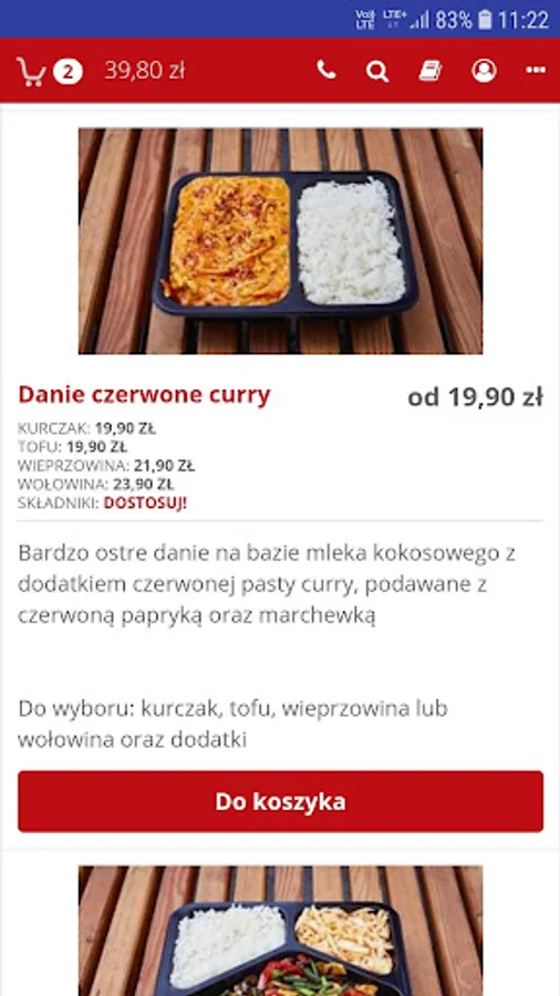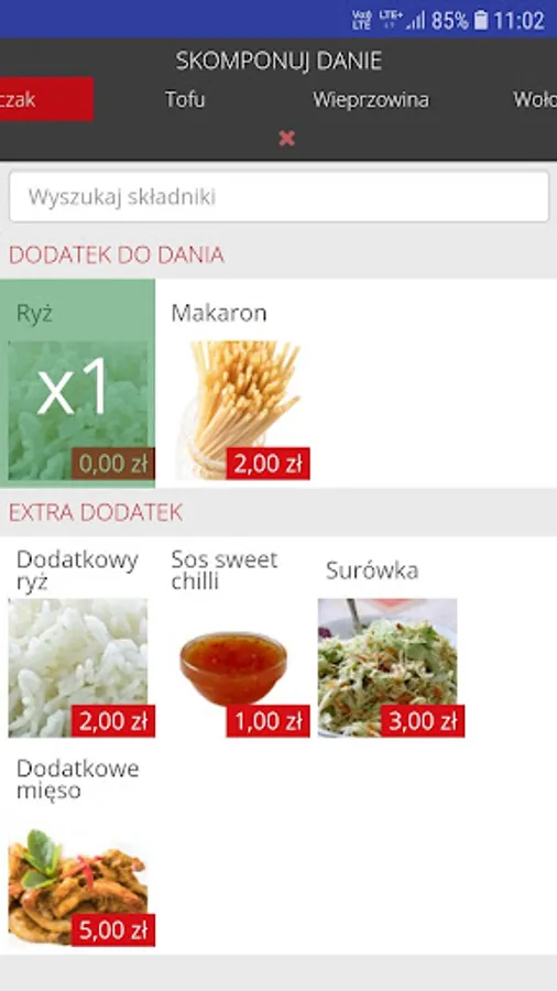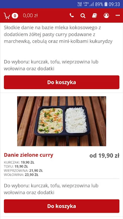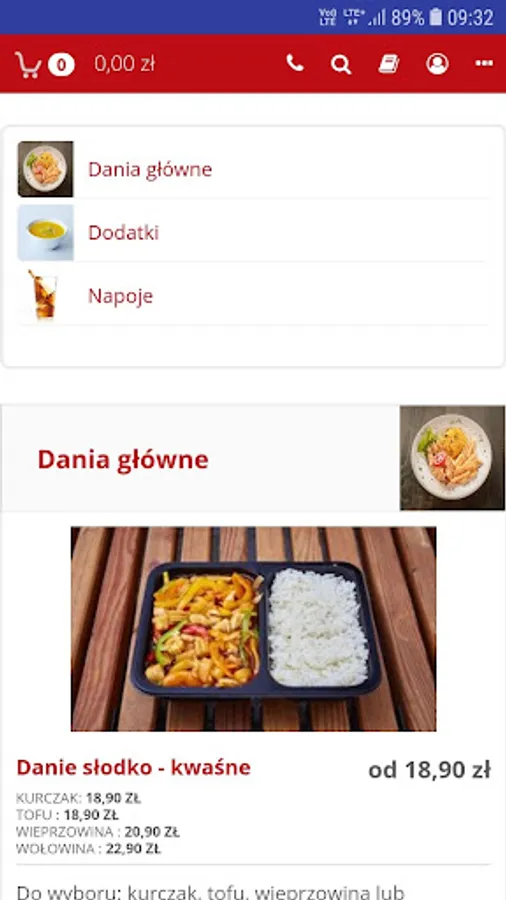 Application for ordering food at the WOK Bar restaurant in Gdansk.