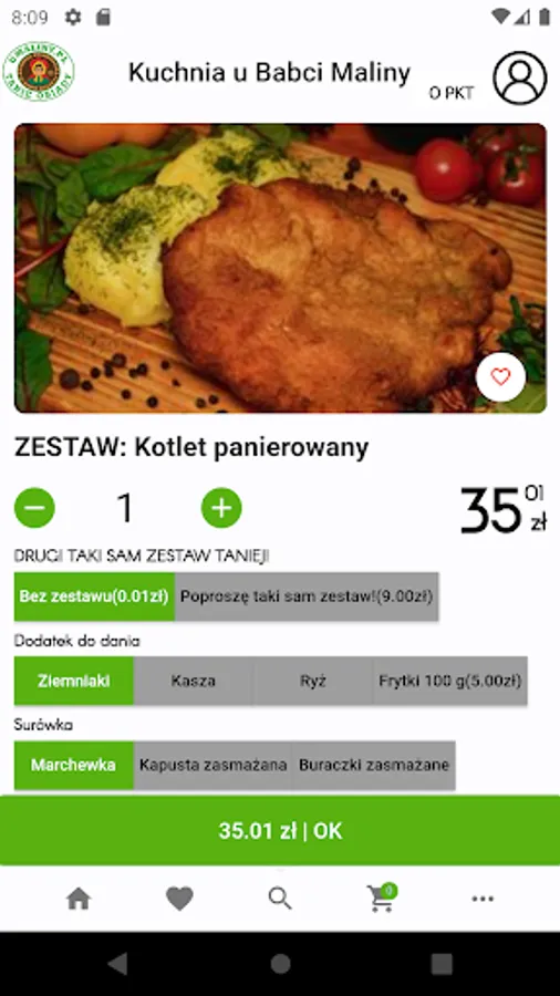 Application for ordering food in the Kuchnia u Babci Maliny restaurant.