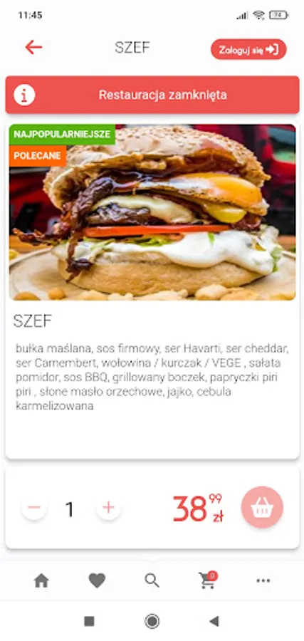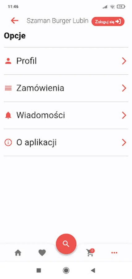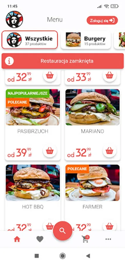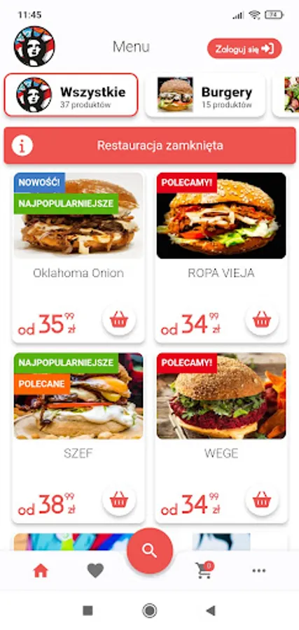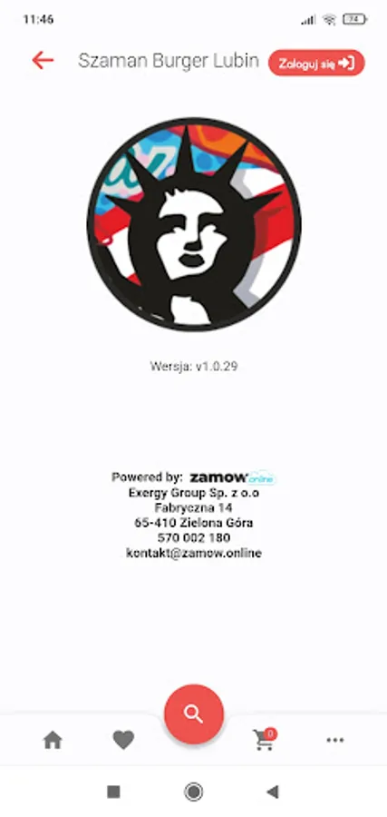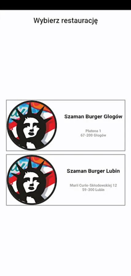 Application for ordering food at Szaman Burger in Lubin and Głogów.