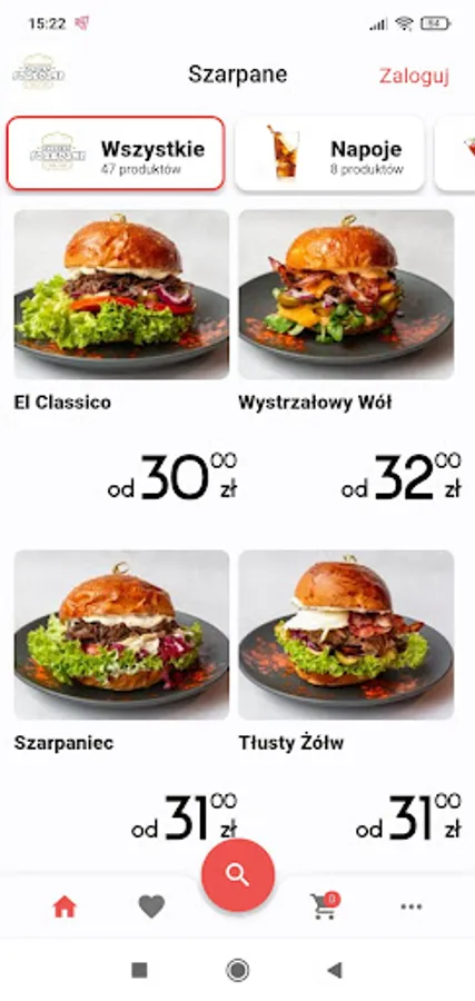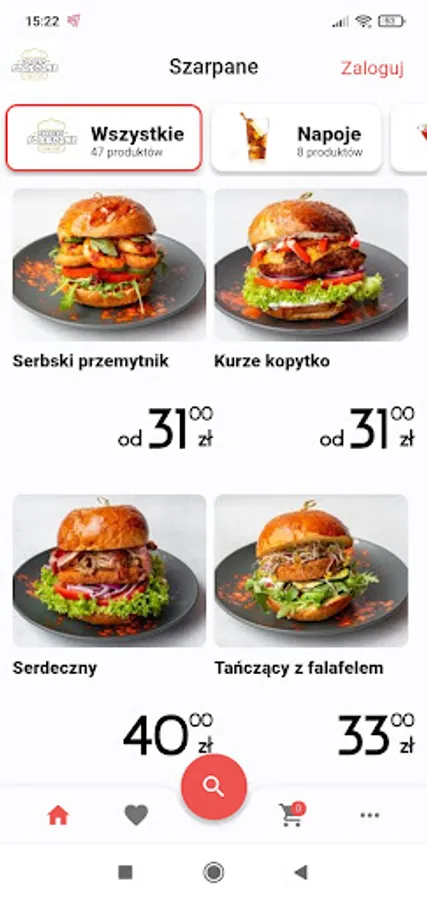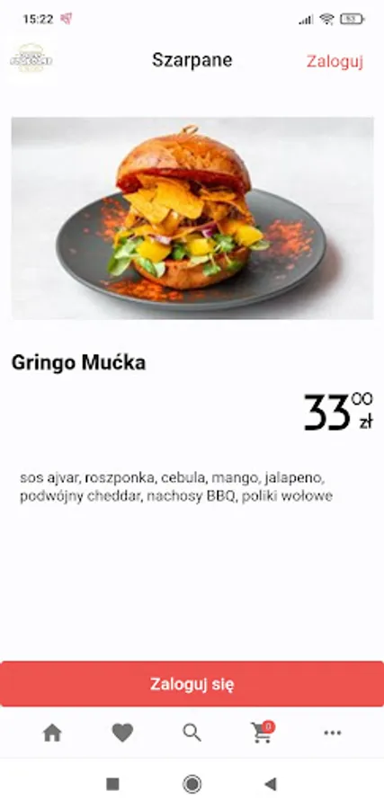 Aplikacja do zamawiania jedzenia w restauracji Szarpane Burgery we Wrocławiu.