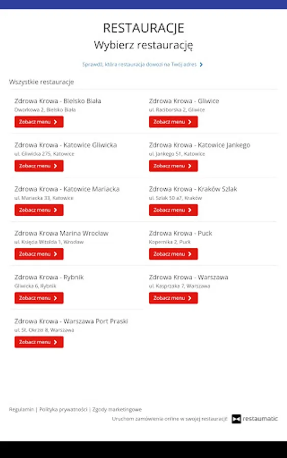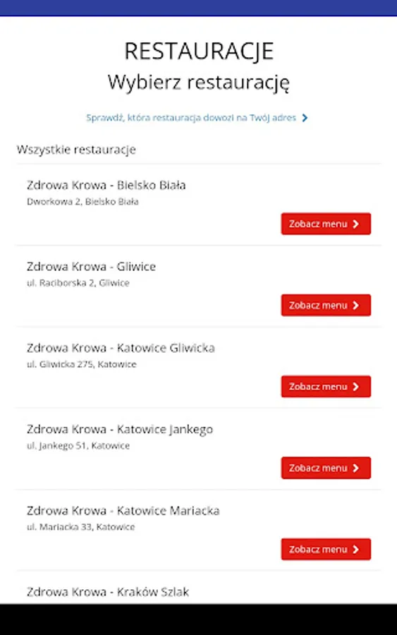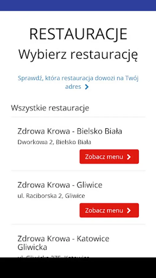 Application for ordering food from Zdrowa Krowa restaurant.