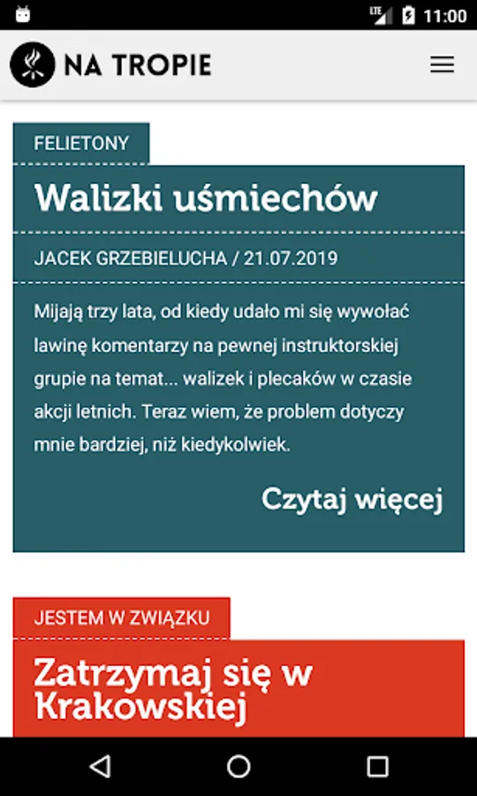 "Na Tropie" is an online travel magazine, i.e. a portal created for travelers and instructors of the Polish Scouting Association, and this is its mobile application.
