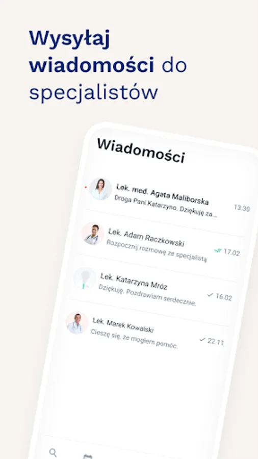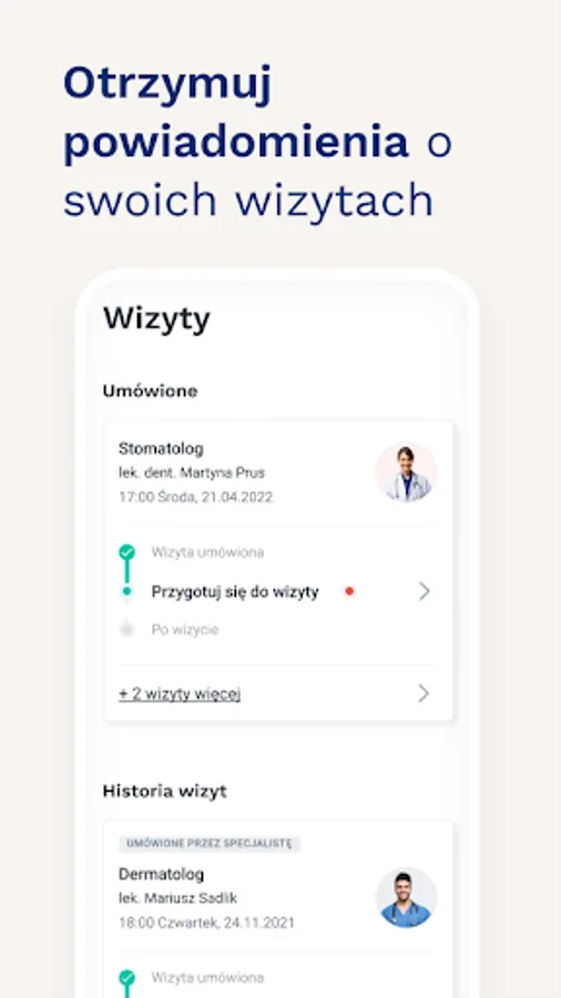 Thanks to the ZnanyLekarz application, you can receive appointment reminders and confirm or cancel appointments. You can also write a message to the specialist to ask a question before the meeting.