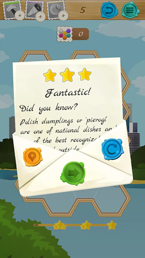 Every time you finish level you will get interesting trivia about specific location.