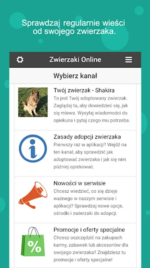 Do you want to prove yourself as a dog, cat, horse or other animal caregiver? Download our application, choose a pet from those that are waiting for adoption and become its virtual owner!