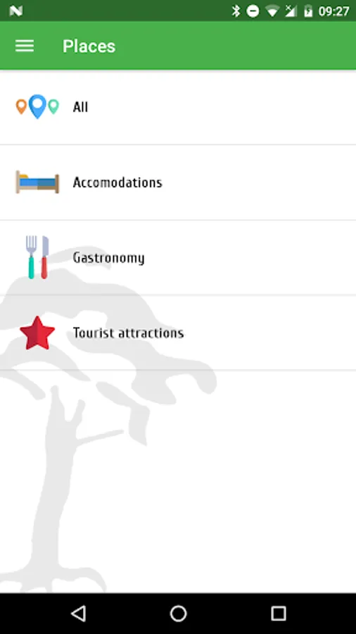 The application features a list of the most fascinating historic monuments and tourist attractions. All these have been divided into categories where each place has its own “business card” containing a short description, contact details and location.