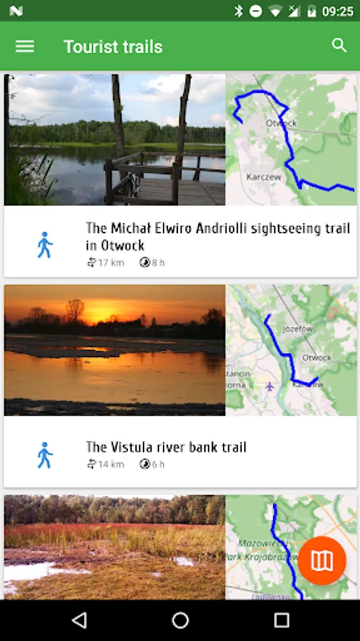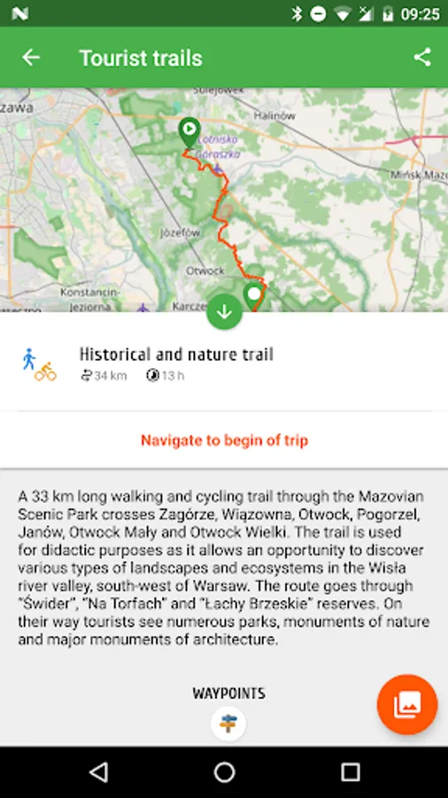 The GPS positions make it very easy to find sites on a map. An useful functionality for those who prefer active tourism can be the list of trails containing short descriptions of tourist attractions as well as their location on a given route. The app also features some interesting articles on the District of Otwock.
