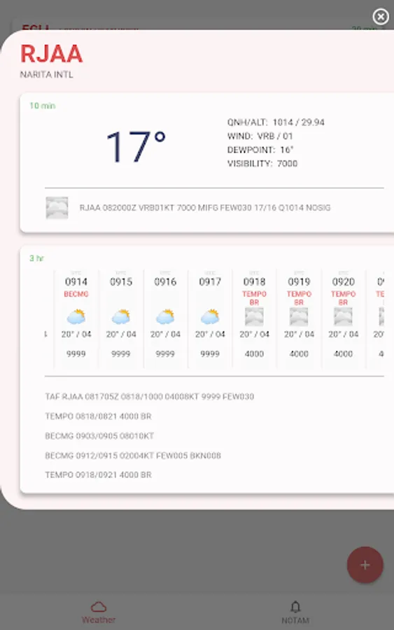 This app provide real time METARs, TAFs, and NOTAMs for all station around the world.
