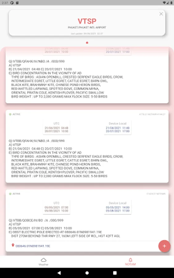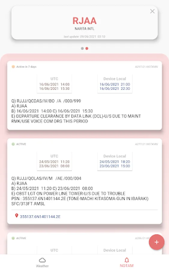 NOTAM -- Display with valid from & to in local time. NOTAM's current status and time remaining before become active and expire for easy to access.