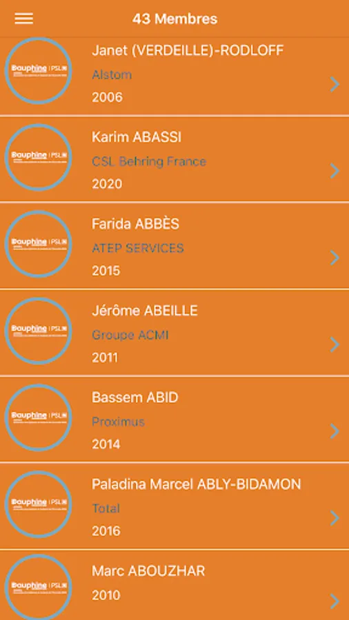 Find the directory of all Graduates with their year of promotion and their contact details.