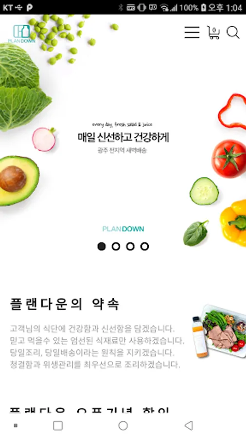 In order to solve the worries about what to eat today, Plandown is composed of 23 menus and six kinds of cleanse juice. Maintain your plan more easily without stress with 8 daily salads, 11 sandwich salads, 4 healthy rice and 6 cleanse juices.