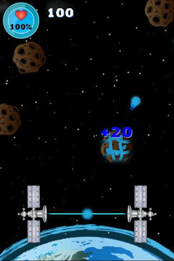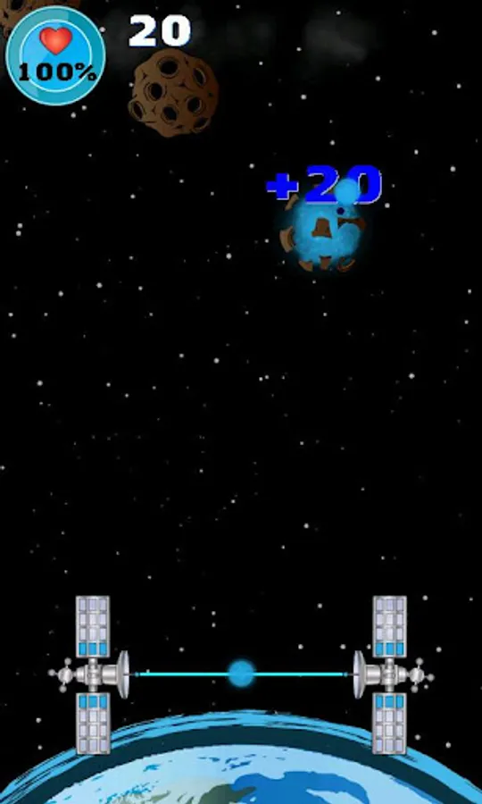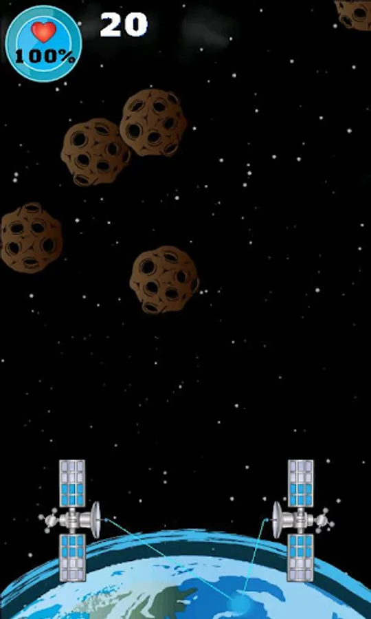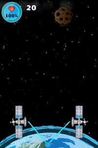 - Slide your finger over the ball of energy located between the satellites as if it were a slingshot and destroy the waves of meteorites. Make sure that no meteorite impact the Earth.
